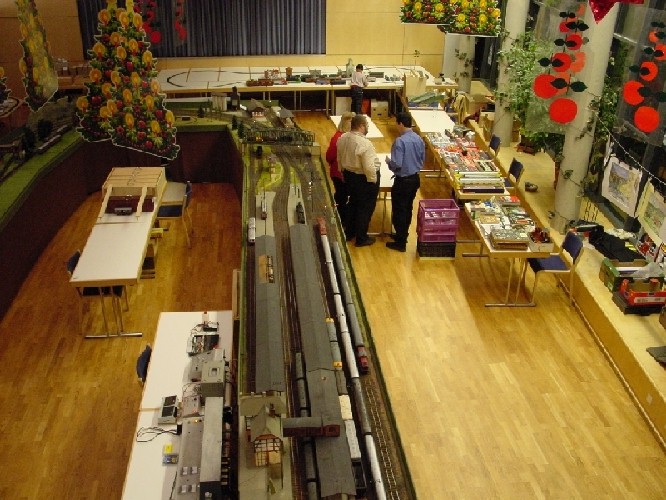 Bhf Neustadt von oben - rechts Verkaufstische - im Hintergrund die Spielbahn von R. Heidemann
