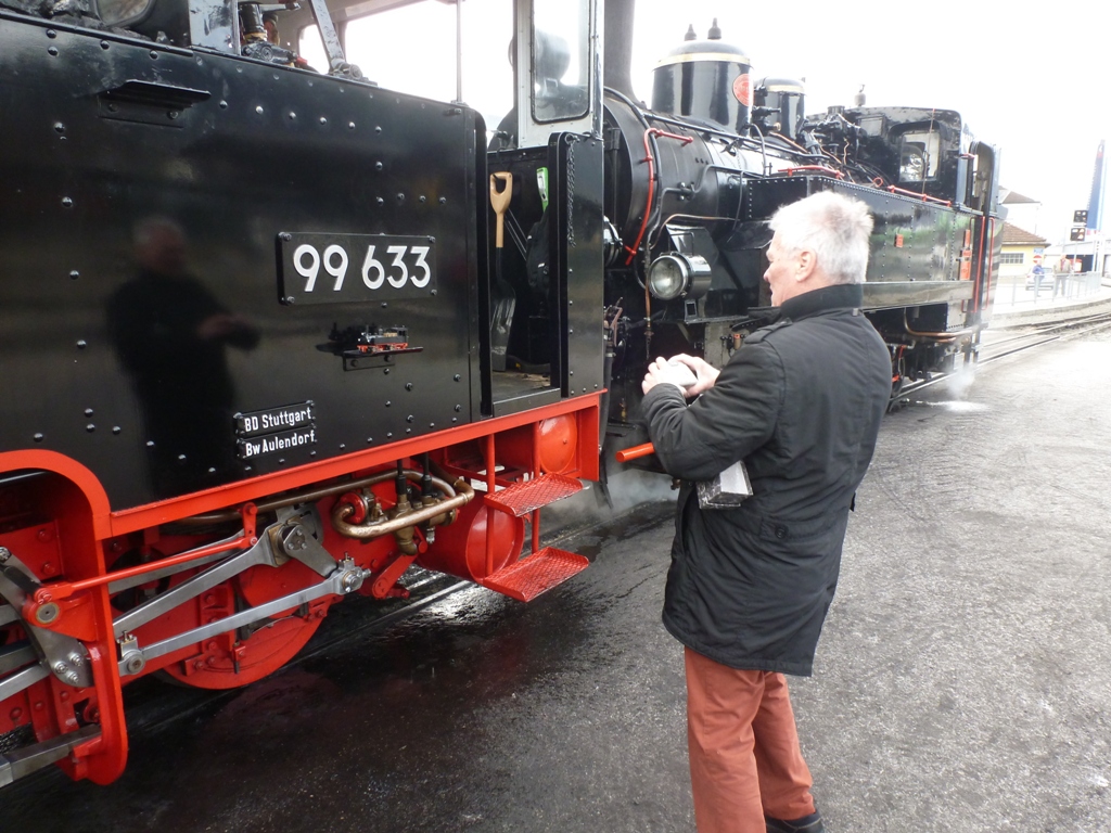 Stammtischler Manfred auf der Originallok